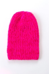 大きめニット帽:ショッキングピンク(蛍光ピンク)モヘア入り